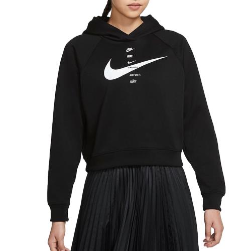 NIKE Sportswear Swoosh 女裝 長袖 帽T 短版 刷毛 印花 黑【運動世界】CU5677-011