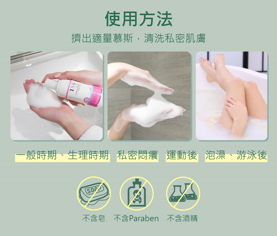 商品詳細介紹 使用方法說明 擠出適量慕斯,清洗私密肌膚,再以清水洗淨即可。 注意事項 僅供外用,如果出現敏感症狀,請諮詢醫生。本產品內含發酵或萃取成分,顏色可能會隨時間而稍微變化,此為正常現象,請安心使用。