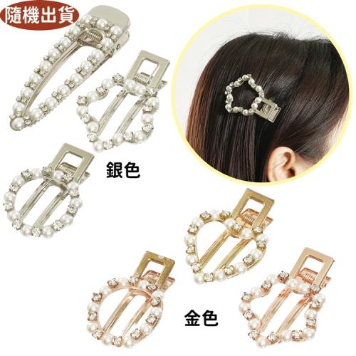 韓版珍珠嘍空鑲鑽鴨嘴髮夾隨機出貨 42-10016【卡通小物】