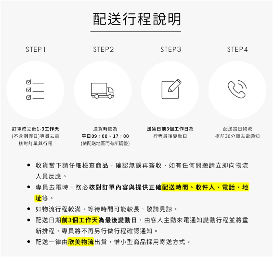 3.溫馨提醒,鑑賞期非試用期,商品經組裝後恕不接受退貨,敬請確認商品是否符合需求並確認商品無瑕庛問題後再組裝與使用。