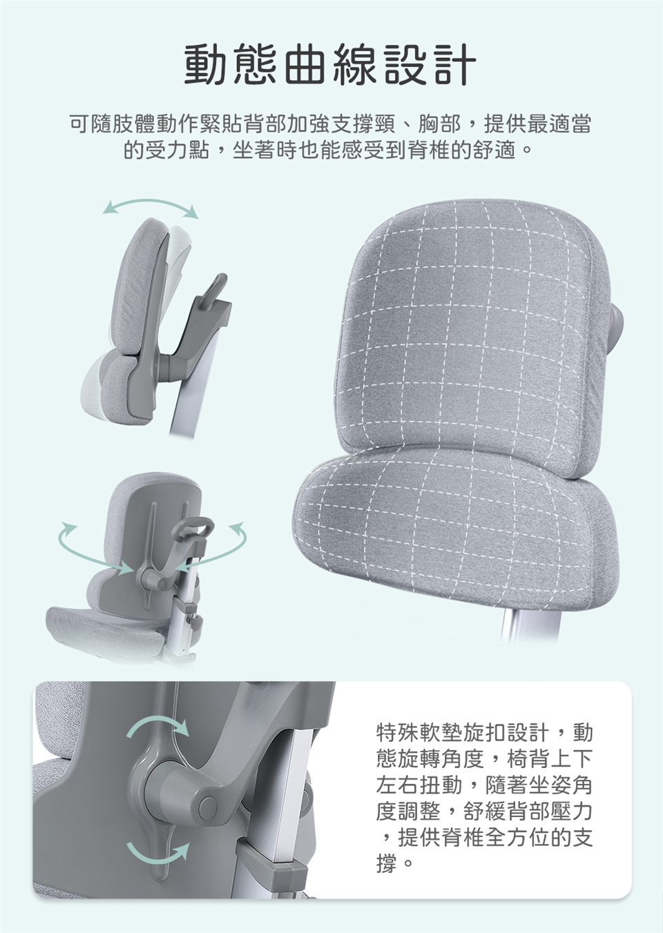 ◆包覆孩子身形防止駝背或久坐腰痠背痛。