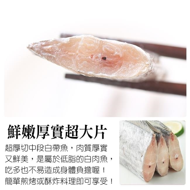 激厚實超大片鮮嫩白帶魚,便當菜最常見的白帶魚,生鮮嚴選厚實肥美鮮嫩白帶魚,肉質細緻 脂肪低 營養豐富,加上細刺不多,全家都愛吃!