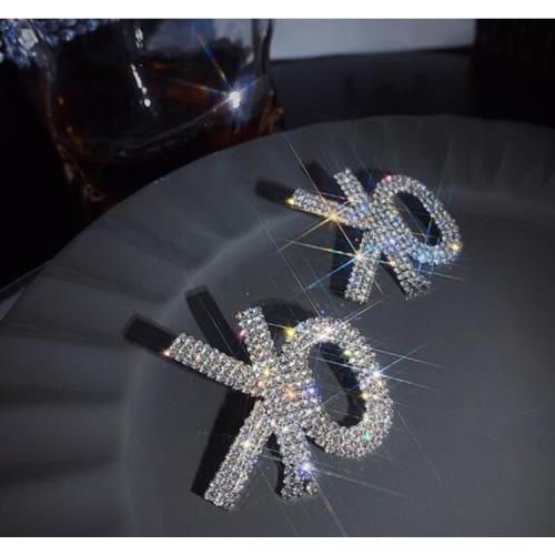 【ANGEL】設計感閃亮OK字母滿鑽鋯石耳環(白金色)