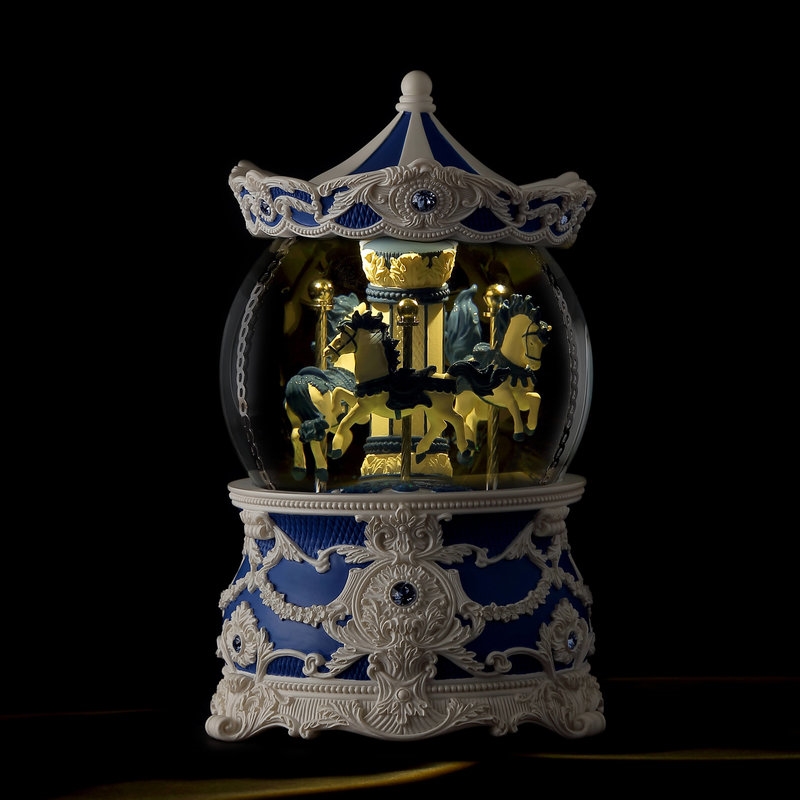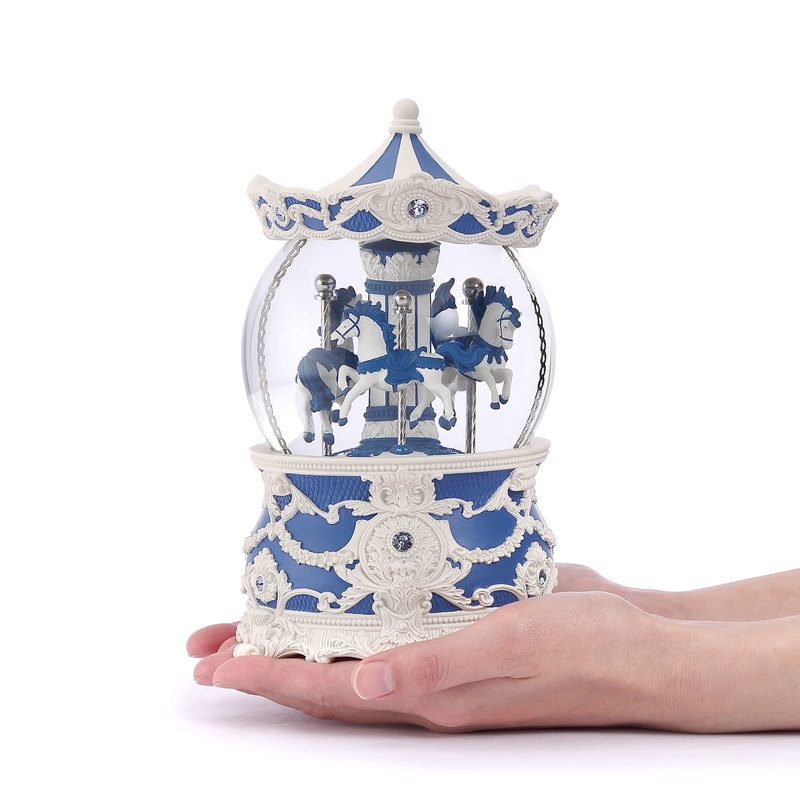 名稱:    雨後藍洛可可旋轉木馬(燈光) 水晶球音樂盒 情人禮物