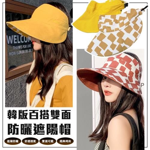 ◎ 素色、方格雙面設計,可隨喜好選擇穿戴。大帽沿款式,遮陽效果佳。
