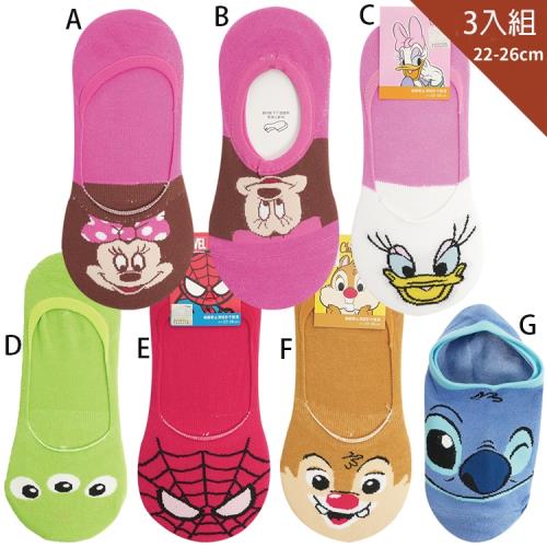 女襪史迪奇米奇米妮蒂蒂唐老鴨三眼怪蜘蛛人隱形襪子短襪22-26cm3入組 106591【卡通小物】