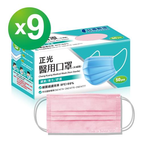 正光雙鋼印醫療級成人醫用口罩 50入/盒X9盒 粉紅色