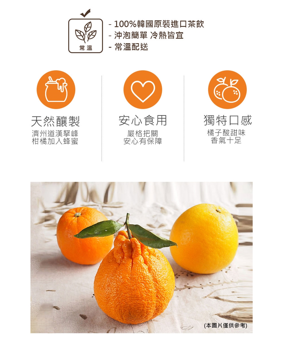 直接加熱(冰)開水沖調成柑橘茶或製成柑橘冰沙,亦可加入紅茶内沖調.另可當果醬或加入蛋糕,西點烘焙