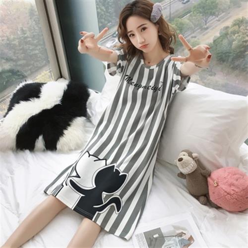 【A3】夏季短袖薄款休閒連衣裙(睡衣哺乳衣多功能)-中長款-預購