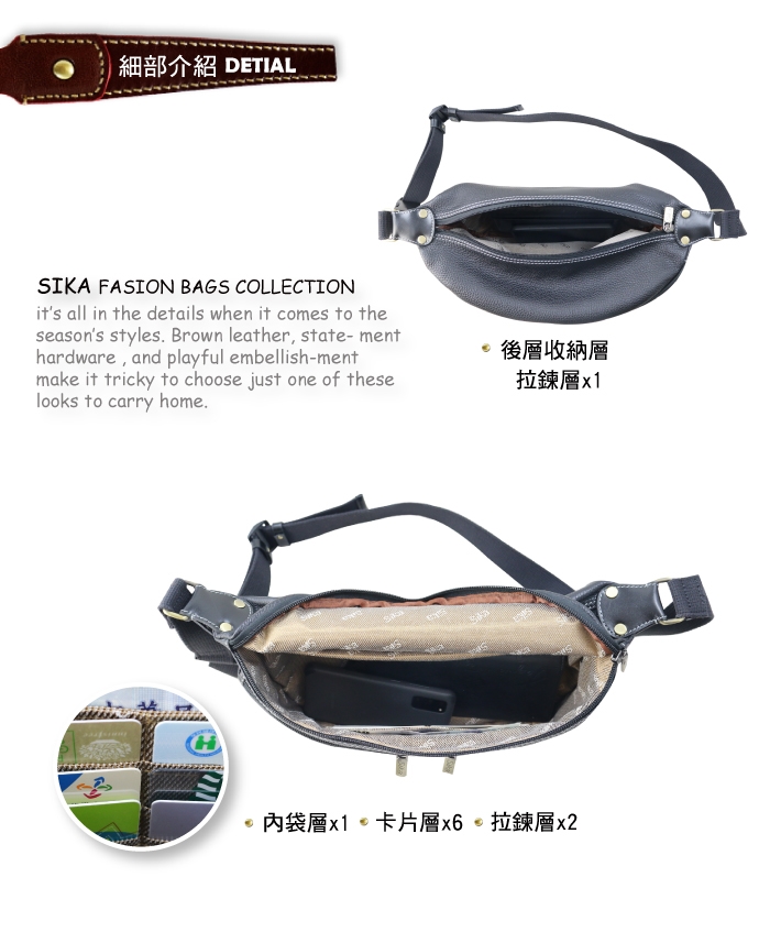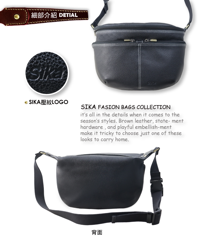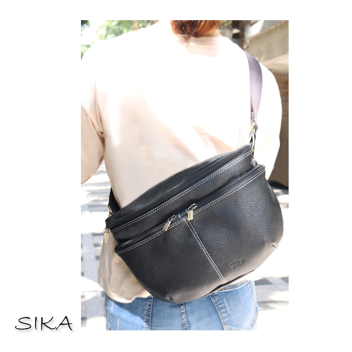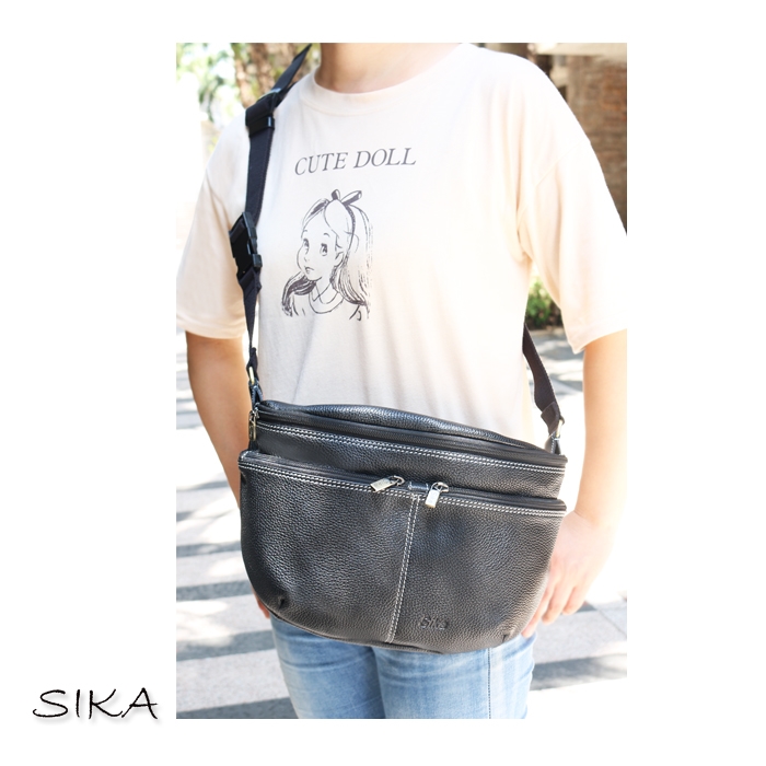 Sika荔枝紋側胸包(大)L6233-03質感黑