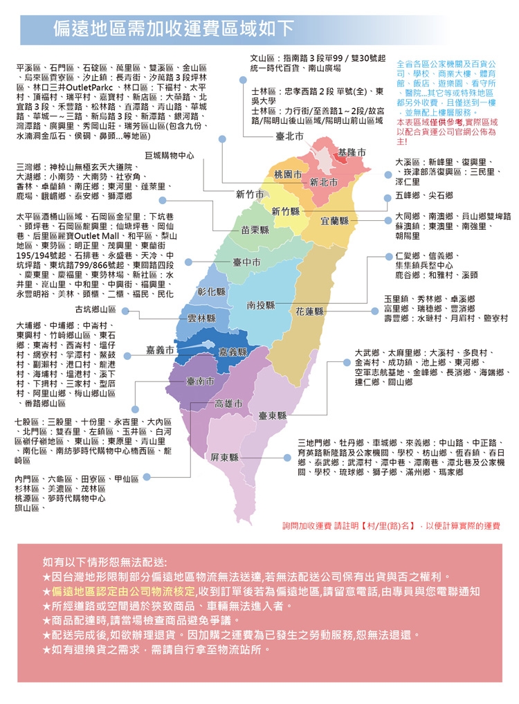▲ 配送地點僅止於台灣本島,外島地區(澎湖、金門、馬祖、綠島、小琉球)無提供服務,敬請見諒。