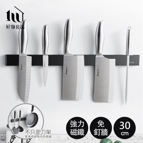 【好物良品】30cm_黑色304不鏽鋼免打孔壁掛式廚房用具磁吸刀架 磁性工具架 磁力刀具收納架
