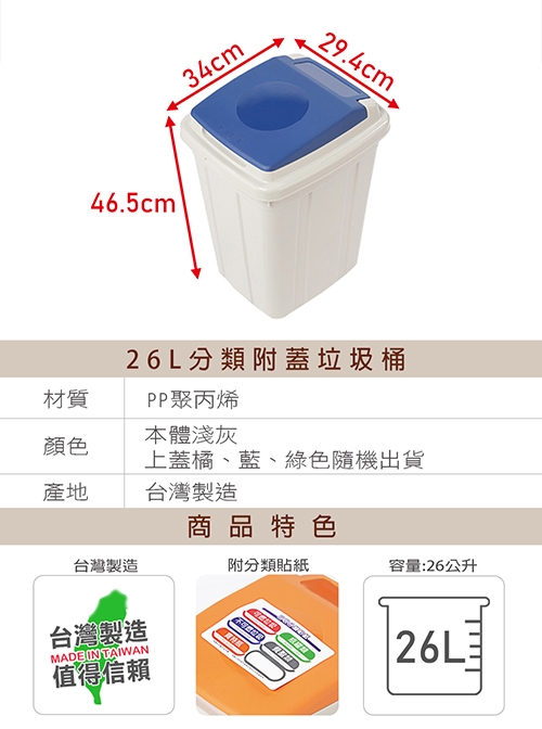 ■上蓋顏色鮮明、可當資源回收桶分類使用!