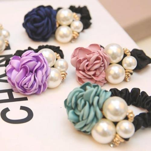 【Jpqueen】溫柔山茶花時尚韓風珍珠彈性髮圈(6色可選)