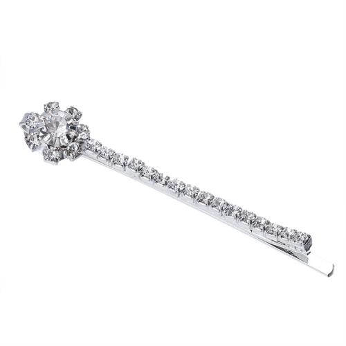【Jpqueen】清新小花水鑽甜美劉海一字髮夾(銀色)