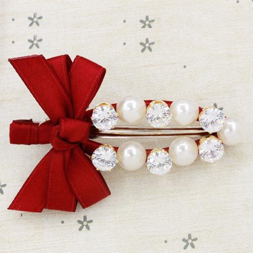 【Jpqueen】緞帶蝴蝶珍珠水鑽甜美劉海U型一字髮夾一對(7色可選)
