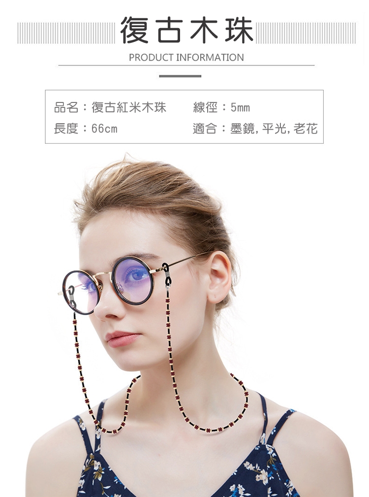 seoul show首爾秀 復古紅米木珠兩用口罩掛繩鏈墨鏡平光眼鏡鍊老花近視防丟鍊