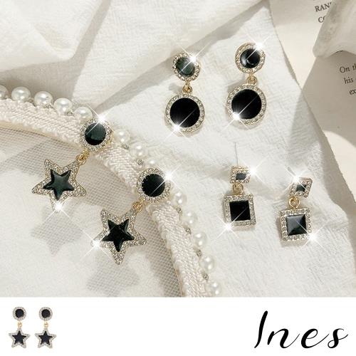 【INES】韓國設計個性幾何黑色滴釉美鑽造型耳環 (3款任選)