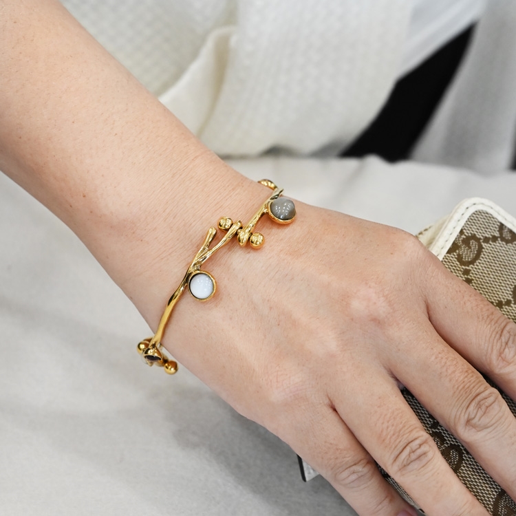 CHLOE專櫃手環新推款,採用斐濟黃銅搭配彩石點綴,流線造型展現低調奢華感,深受許多時尚部落客、好萊塢女星愛戴,無論送禮或自用皆適宜