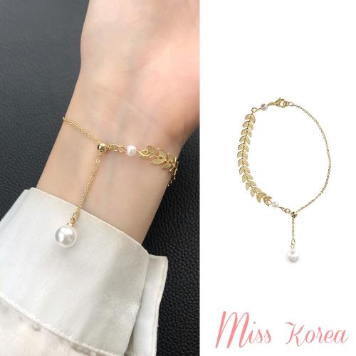 【MISS KOREA】韓國設計麥穗珍珠縮拉式氣質手鍊