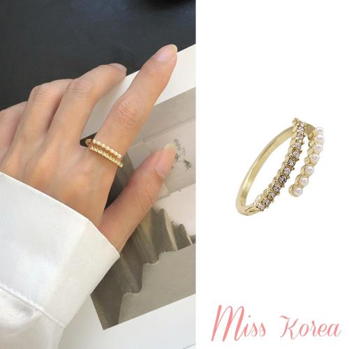 【MISS KOREA】韓國設計細緻排鑽珍珠溫柔氣質開口戒