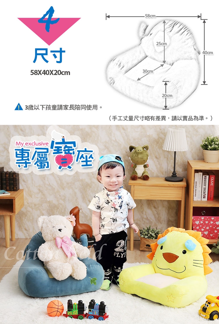 ★ 純真生活系列,讓寶貝居家用品更多彩。內材填充Q彈聚酯纖維超厚實,坐得更舒適 ★