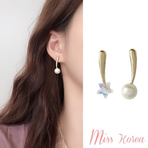【MISS KOREA】韓國設計S925銀針小巧可愛星星珍珠造型耳釘