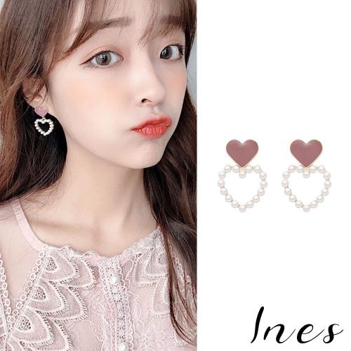 【INES】韓國設計S925銀針縷空愛心珍珠氣質滴釉耳環
