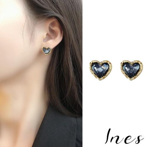 【INES】韓國設計S925銀針簡約流沙金邊小巧桃心耳釘 (2色任選)