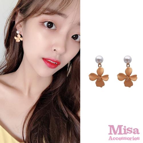 【MISA】韓國設計S925銀針啞光彩色立體花朵氣質珍珠耳環 (3色任選)