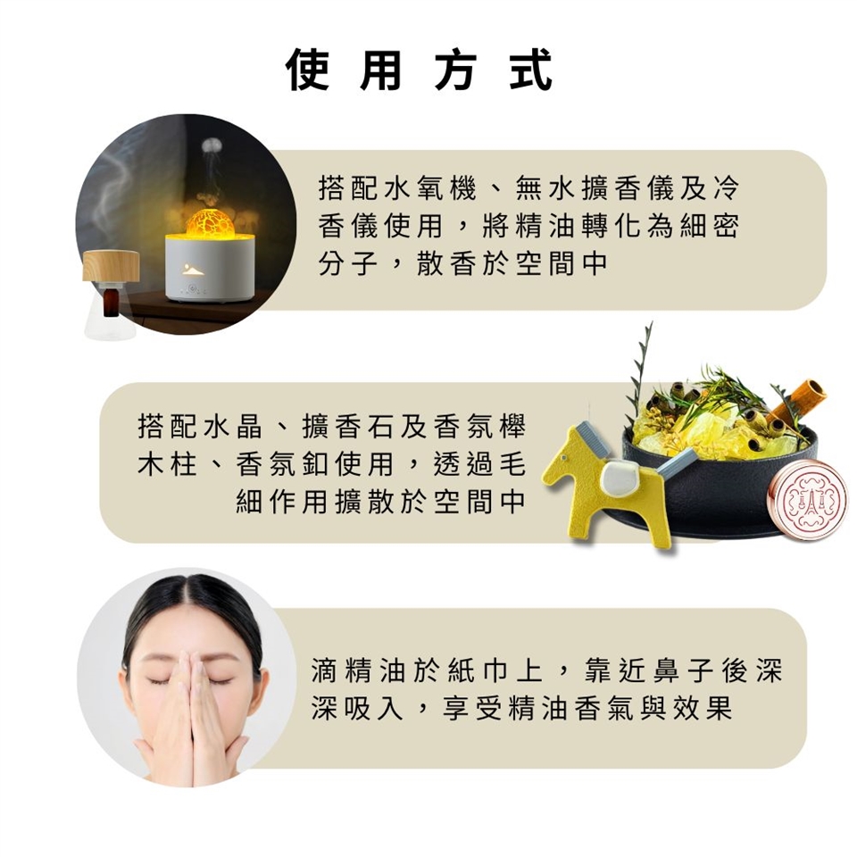 純天然精油,為高濃度產品,未經稀釋請勿直接接觸肌膚。可經由空氣擴散吸入。