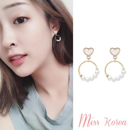 【MISS KOREA】韓國設計S925銀針甜美愛心滴釉珍珠圈圈耳環