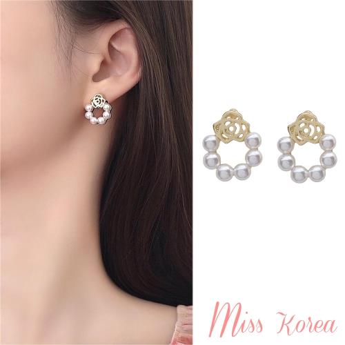 【MISS KOREA】韓國設計S925銀針法式優雅縷空玫瑰珍珠耳環
