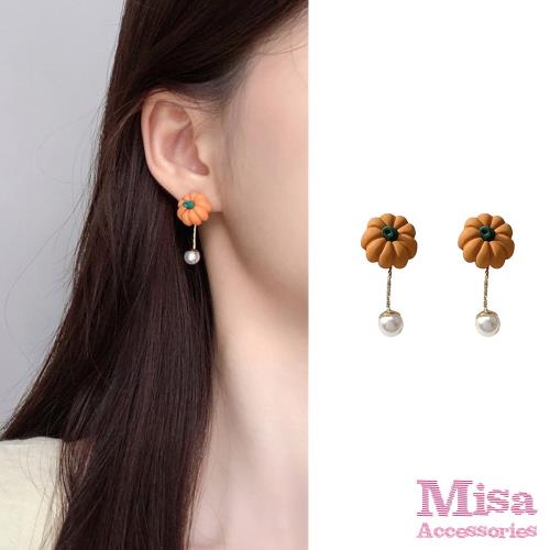 【MISA】韓國設計S925銀針兩戴法可愛小南瓜珍珠耳環
