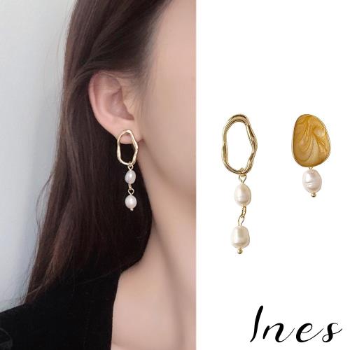 【INES】韓國設計S925銀針不規則金屬滴釉造型珍珠耳環 (2色任選)