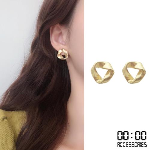【00:00】韓國設計S925銀針復古啞光磨砂三角金屬耳釘