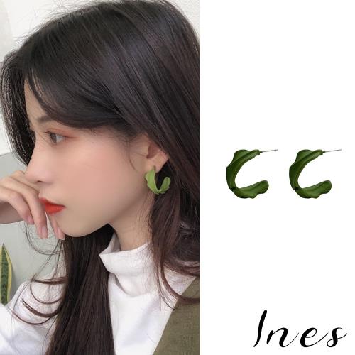 【INES】韓國設計S925銀針清新抹茶色復古綠葉造型C圈耳環