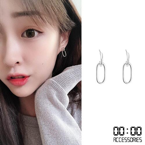 【00:00】韓國設計S925銀針金屬幾何雙圈簡約造型耳環