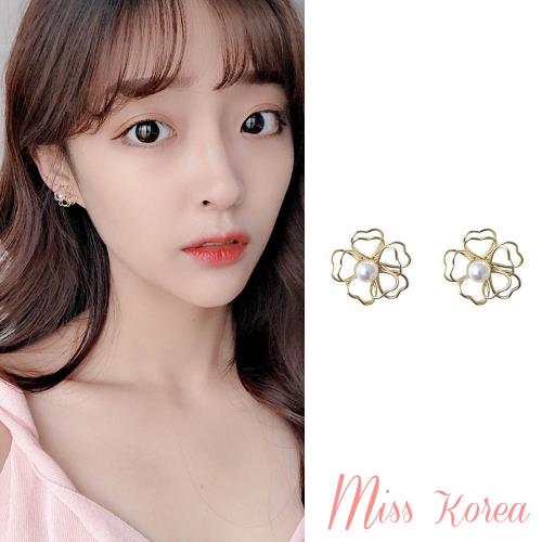 【MISS KOREA】韓國設計S925銀針復古花朵線條珍珠耳環