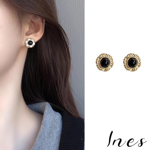 【INES】韓國設計S925銀針氣質簡約縷空寶石耳環