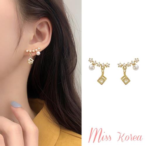 【MISS KOREA】韓國設計S925銀針優雅立體鋯石吊墜珍珠耳環