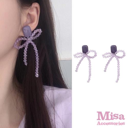【MISA】韓國設計S925銀針香芋蝴蝶結水晶串珠氣質耳環