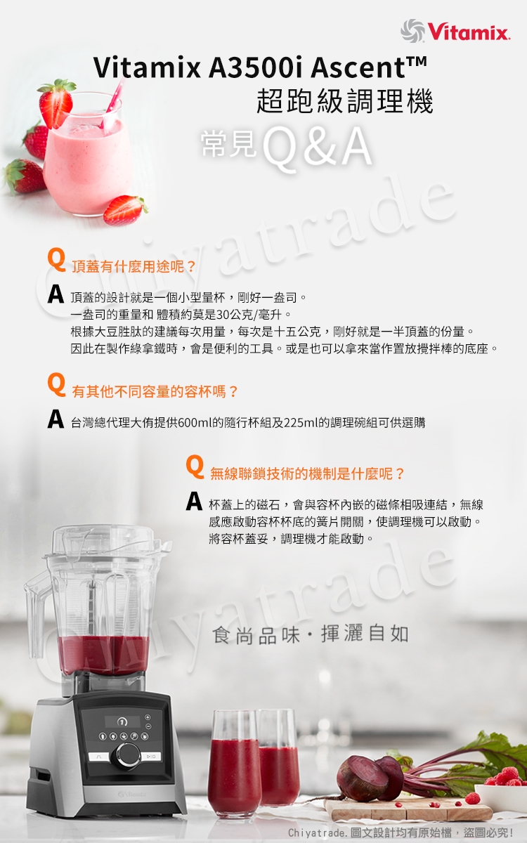 產品配件: 2.0L攪拌杯、專屬攪拌棒、馬達底座、原廠食譜書
