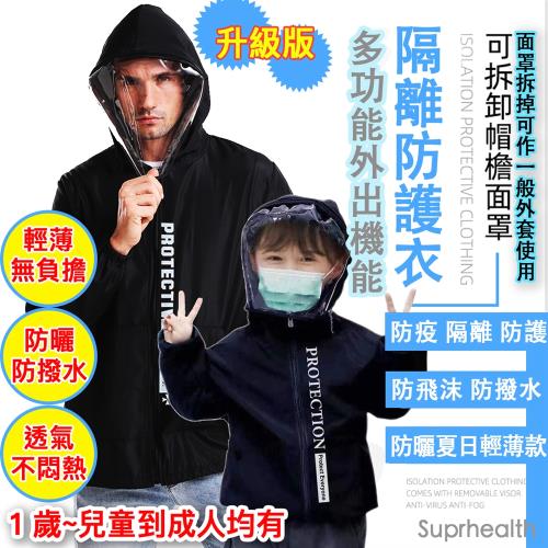 suprhealth 多功能可拆面罩機能隔離防護衣( 防飛沫 防撥水 防曬 超輕量 夏日輕薄升級款) 防疫 外套 面罩機能防護夾克