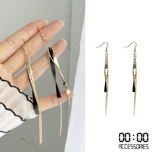 【00:00】韓國設計明星同款金屬扭片流蘇長款耳環