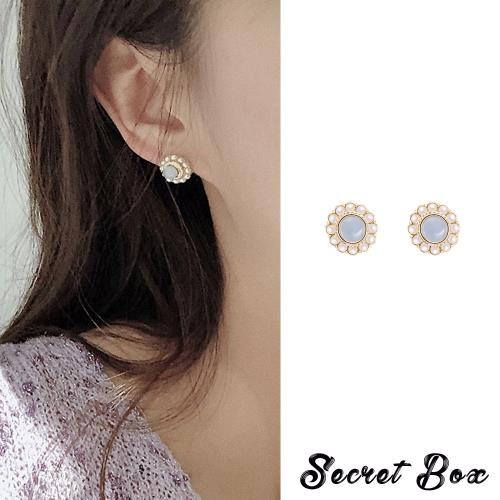 【SECRET BOX】韓國設計S925銀針復古珍珠花朵寶石耳環 (2色任選)
