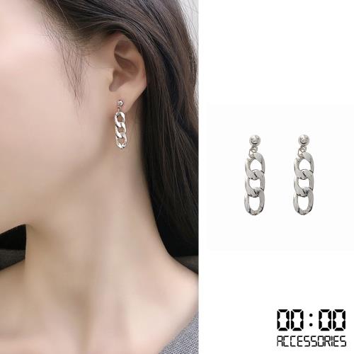 【00:00】韓國設計S925銀針歐美潮流個性金屬鍊造型耳環