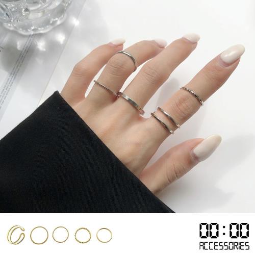【00:00】韓國設計簡約潮流時尚戒指五件套 (3色任選)