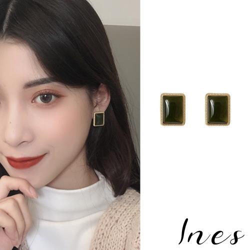 【INES】韓國設計S925銀針幾何方形寶石耳環
