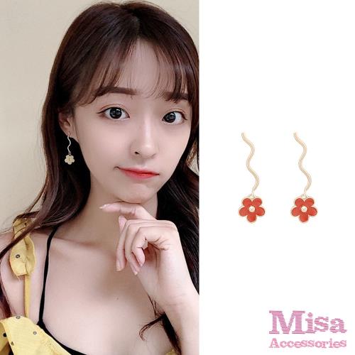 【MISA】韓國設計可愛波浪線條彩色釉面小花耳環 (2色任選)